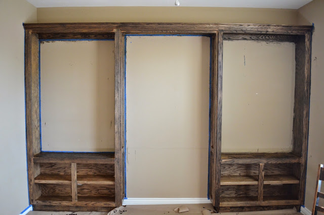 cabinet doors and shelves, Jason said "what if we just painted it?", I