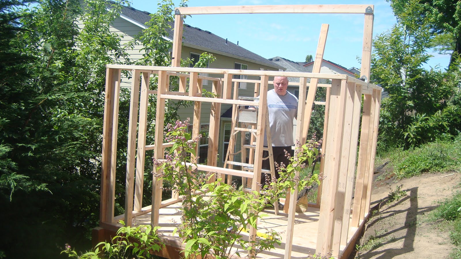 So there it is! We have more to do like put on trim, windows, and paint it. We also need to dig out some steps up to it, so it's easier to get to. Now we can kick the kids out of the house this summer and into their new house.